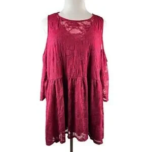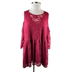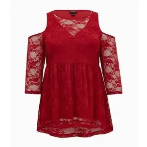 Torrid Babydoll Stretch Lace Cold Shoulder Top Biking Red Plus Size 4 4X