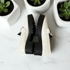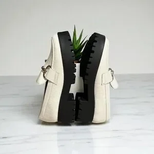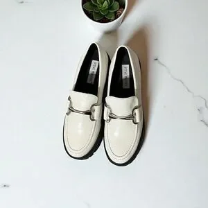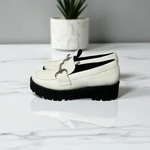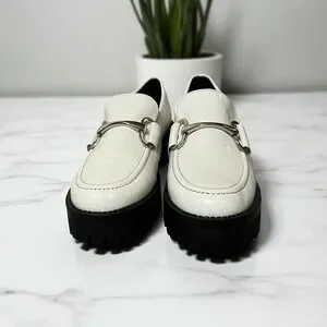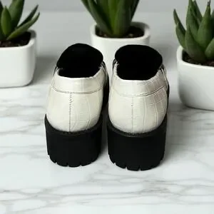 Steve Madden Lug Sole Loafers Size 7.5 White Croc Embossed Hardware Accents