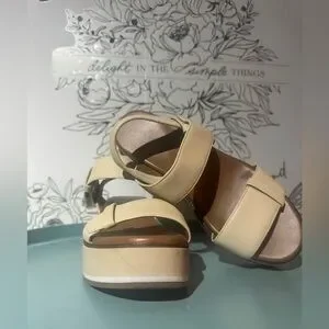 Caslon platform sandals in a creamy tan tone. Wide cross straps and an adjustable ankle strap. Soft footbed for everyday comfort. Chunky platform sole for subtle lift.