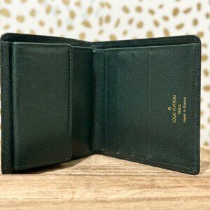 Authentic Louis Vuitton Dark Green Taiga Leather Bi-fold Wallet