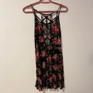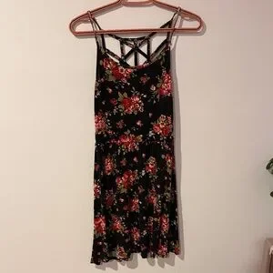 Floral Black and Red Women's Dress