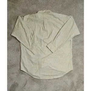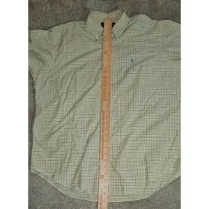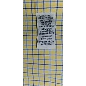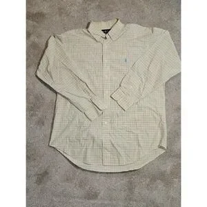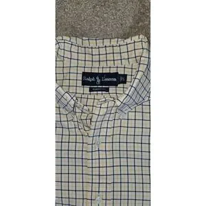 Ralph Lauren Mens Classic Fit Tattersall Check Button Down Shirt Yellow Blue Size Large. Classic fit button-down made of cotton with a timeless yellow and blue tattersall check pattern. Single chest pocket with a signature blue pony embroidery, and a curved hem.