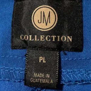 Blue JM Capris. Pull on styling and flat waistband with crisscross and sparkle stud detailing at the hemline No pockets. Petite Large