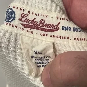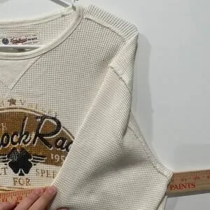 Keywords: Lucky Brand, thermal shirt, long sleeve, racing graphic, waffle knit, casual wear, vintage style, comfortable, road trip, gift for him, streetwear, motorsport, crew neck