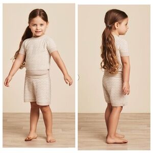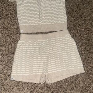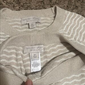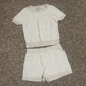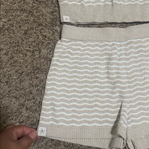 Barefoot Dreams CozyChic Ultra Lite Wavy Shorts and Matching Top in Stone/Pearl