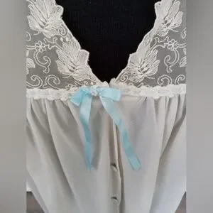 Adorable Vanity Fair 60s Vintage Babydoll Nightgown Chemise/Top. Made In USA. The lace, blue bow, and babydoll look give it a romantic and feminine feel. Ideal for collectors or those looking to add a touch of nostalgia to their sleep/lounge wear collection. (Measurements and condition down below)