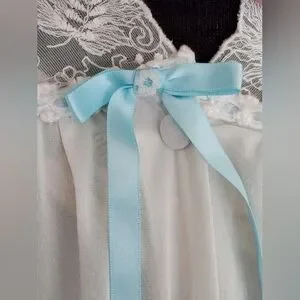 Vanity Fair 60s Vintage Babydoll Nightgown Lace Blue Bow. Made In USA. Excellent