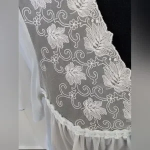 *Excellent pre-owned condition. Little to no signs of wear. One alteration to note: the sleeves were altered to be shorter and the edge is not exactly even. With the flutter sleeves, it is not very obvious to notice. I did not notice until my face was right up close to them. You can sew these easily to be more even if you want