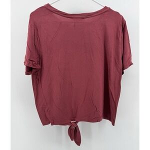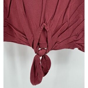Clyde and Baxter Women's Short Sleeve Blouse Tie Front Maroon Red Size XL