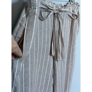 Beach Lunch Lounge Striped Linen & Cotton Paperbag Waist Pants Women XL NEW