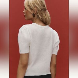 Meet Mollie, a top-rated sweater star that shines with subtle puff sleeves and a form-fitting silhouette. The perfect spring sweater!