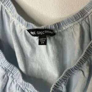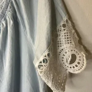 Unique Spectrum Top Womens 2X Plus Size Light Blue Lace Trim Boho Artsy