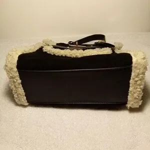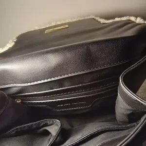 Badgley Mischka Black Satchel with Cream Shearling Trim