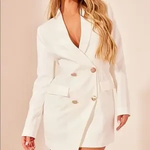 PrettyLittleThing White Double Breasted Mini Blazer Dress US (4) UK (8)