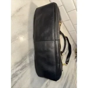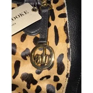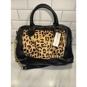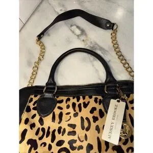 The Audrey Brooks Leopard Skin/black Leather Purse is a stylish shoulder bag designed for women. The exterior features a sleek black leather material with a bold leopard print theme, making it a statement accessory. This purse is brand new with tags, ensuring that it is in top condition for the fashion-forward woman looking to add a touch of animal print to her wardrobe.