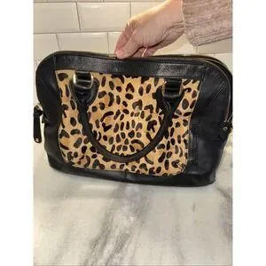 Audrey Brooks Leopard Skin/black Leather Purse New With Tags