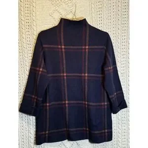 Max Studio Women's Top Sweater Short Sleeve Plaid Navy Multicolor Mock Neck Sz M