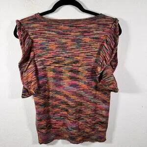 Anthropologie Sweater Womens Multi Stripe Sleeveless Ruffle Boho Size XS