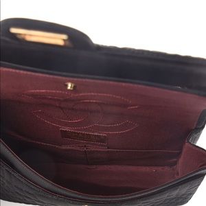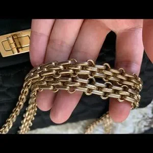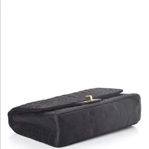 Elegant CHANEL shoulder bag in black quilted leather. Gold chain strap and gold-tone turn-lock clasp. Sleek silhouette and timeless design. Perfect for dressy and casual looks.