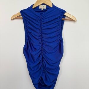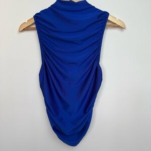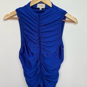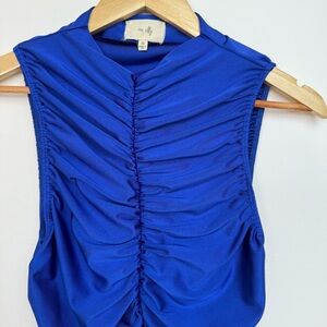 Anthropologie En Elly Ruched Mock Neck Tank Royal Blue Size Small (S)