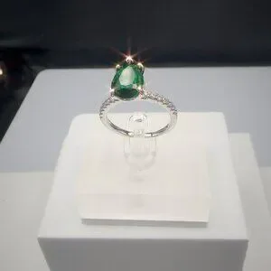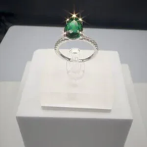 Adorn your finger with this elegant sterling silver ring featuring a radiant pear-cut green gemstone, complemented by sparkling pave accent stones for added brilliance.