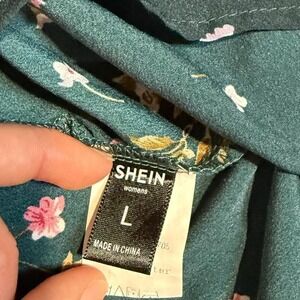 Green floral romper with puffy sleeves and open back #romper #summer #grunge #cottage