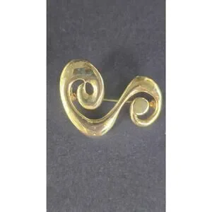 Item: Abstract swirl brooch pin featuring a flowing double-curve scroll design.