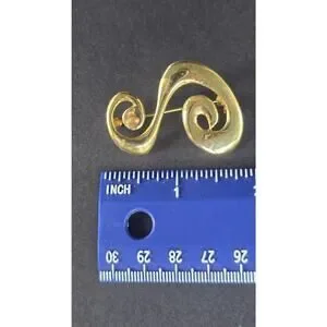 Gold Tone Abstract Swirl Brooch Pin Modern Scroll Costume Statement Jewelry