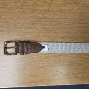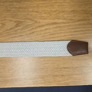 Tommy Hilfiger Mens White Woven Stretch Belt Leather Trim Size Large (38 To 40)