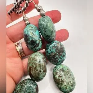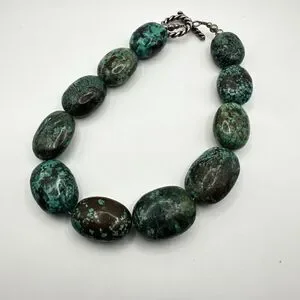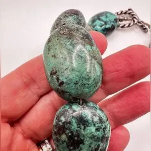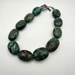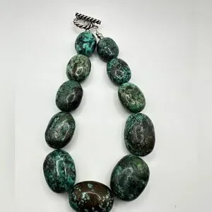 16” of polished chunks of green turquoise statement necklace with 925 hardware!