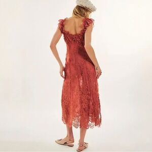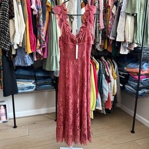 FOR LOVE & LEMONS Holiday Lace Flutter Midi Dress In Mauve Pink Size Small NWT