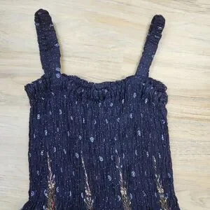 💛One Size Plus Blue Floral Print Sleeveless Maxi Dress One Size