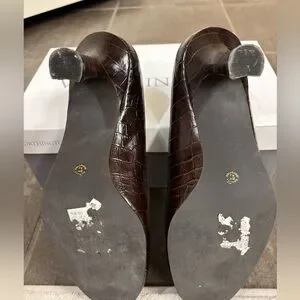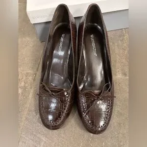 Worthington Dark Brown Croc-Embossed Leather Heels with Knot Detail