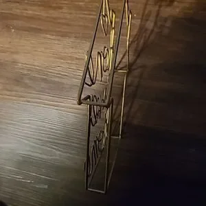 Pre-owned in good condition. The copper metal sign is approximately 8 inches long, approximately 7 inches wide and 1 inch in depth.