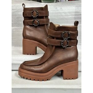 Sam And Libby Chiara Heeled Ampersand Booties Faux Leather Size 9 Platform