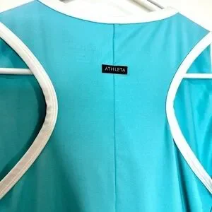 In like new condition no signs of wear Athleta tank top. The top has a green zipper that goes half way down the top. There is a back zipper pocket that can hold items while you workout. Pocket is large enough for phone and keys! From a smoke free home.