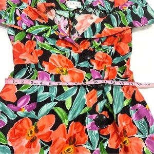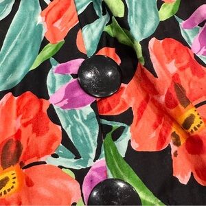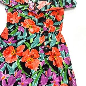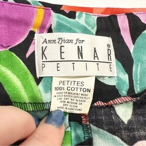 Vintage Ann Tjian For Kenar Petites Cotton Graphic Floral Off Shoulder Dress