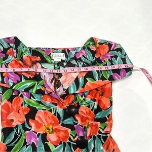 Vintage Ann Tjian For Kenar Petites Cotton Graphic Floral Off Shoulder Dress - VGUC