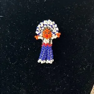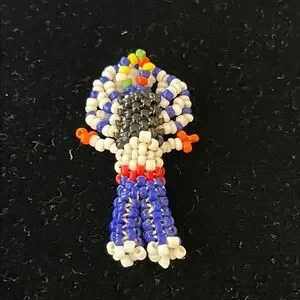 The image shows a handmade, beaded figure, commonly sold as a Native American headdress pendant or necklace charm.