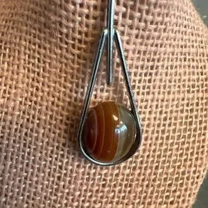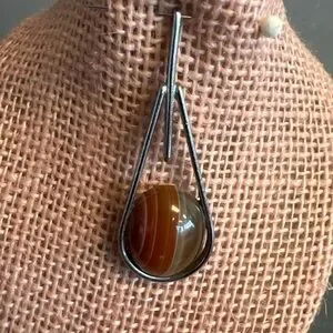 Stunning banded agate teardrop pendant featuring rich brown and cream stripes in a modernist frame. A beautiful statement piece that adds a natural earthy touch to any outfit.