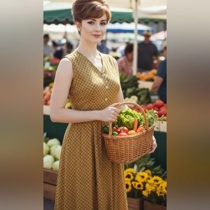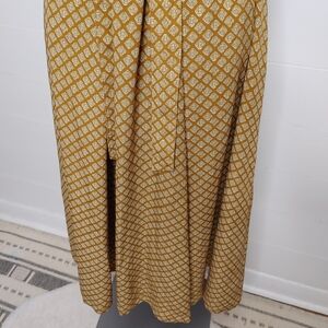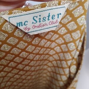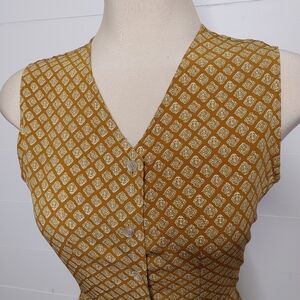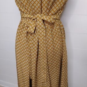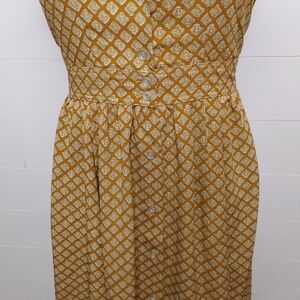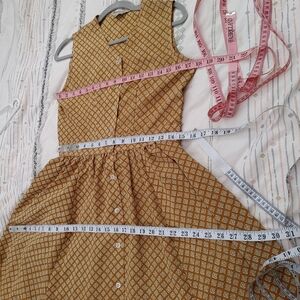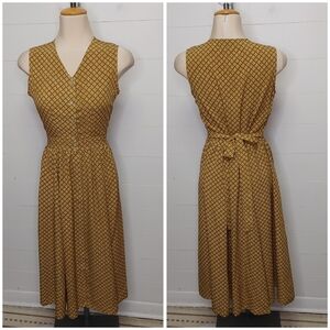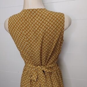 Mustard button down vintage 60's midi dress with attached ties on sides. Can be tied front or back. Unlined. No size or material tags. No stretch. Fits closest to a medium. Check measurements! In excellent condition. Brand: Mc Sister by Onlion Club.