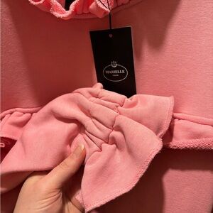 The perfect dress for Valentines Day 💘 and beyond. Turn up the sweetness with our Dress Sophie in pink! Made from cozy sweatshirt fabric, this dress features charming ruffles and soft cotton for ultimate comfort. A perfect combination for a stylish yet casual look. (Warning: this dress may cause excessive twirling and compliments)"