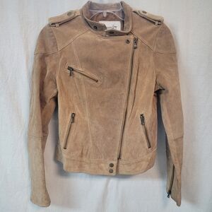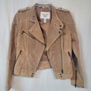 Brown Genuine Suede Leather Crop Moto Jacket Lined, American Rag Women’s Small