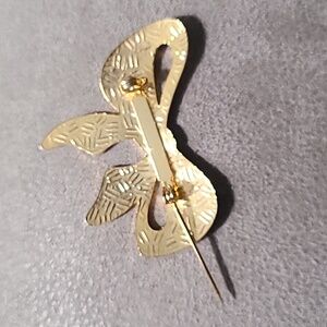 Vintage 1980's Gold Tone Cloisonne Bow Brooch