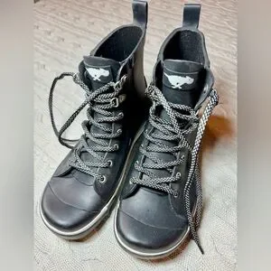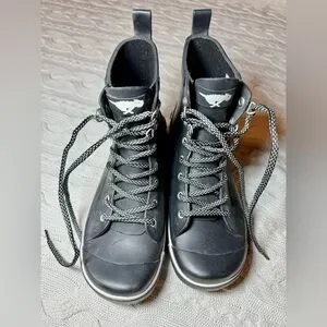 ROCKET DOG Black Rubber Rain Boots Womens Hi Tops Lace Up #1027