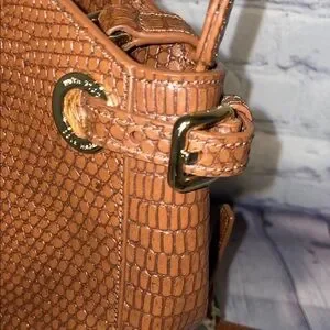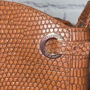 Stylish Cole Haan crossbody with textured design. Elegant British tan color. Perfect for versatile wear.