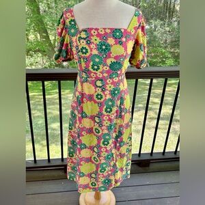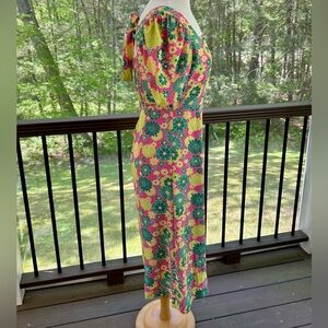 Glamorous Pink Green Yellow Size 8 Dress Floral Tie Back Square Neck Side Split