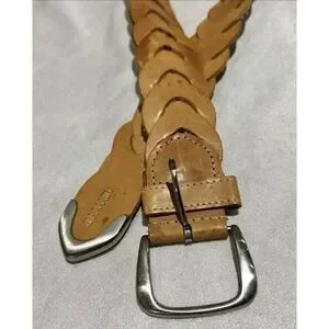 Brown‎ Leather Belt Braided Size Small 2" Wide