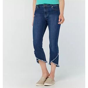Susan Graver Womens Plus 28 High Stretch Dark Denim Jeans Blue Frayed Tulip Hem