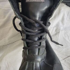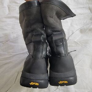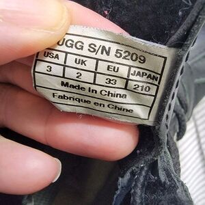 UGG Kids Butte Winter Boots Black Leather. Ans suede shearling lined Insulated Waterproof unisex kids Size 3 S/N 5209. Very good condition see photos.